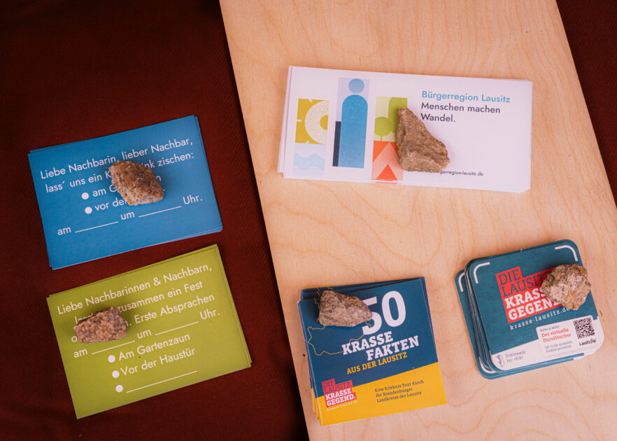 Der Mitmachstand macht unsere bisherige Arbeit aus Vernetzen, Ermutigen und Beraten rund, weil wir mit ihr die Orte aufsuchen, an denen wir uns echte und ehrliche Gespräche über die Lausitz erhoffen. Wenn ihr die Bürgerregion Lausitz mit diesem Blickfang auf eurer Veranstaltung haben wollt, lasst es uns wissen. Vielleicht passen wir zusammen 😉