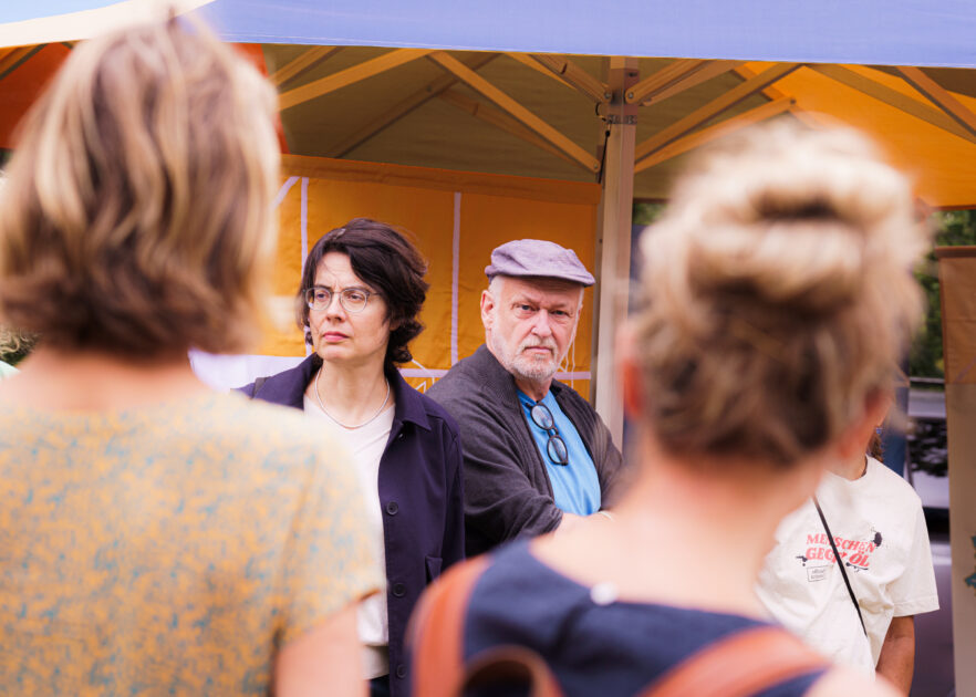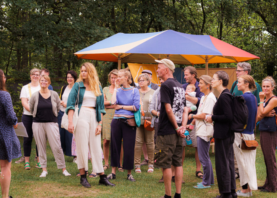 Gäste des ÜBERLAND Festival bei unserem Workshop vor dem Mitmachstand. Foto: (c) Valentina Troendle.