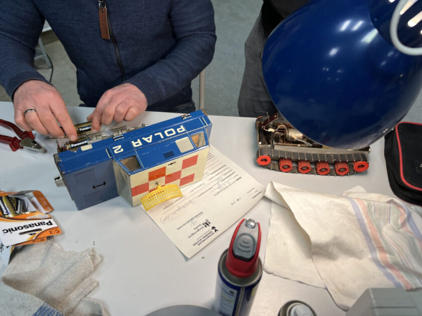 Insgesamt konnten wir zehn Geräte wieder instand setzen – von einem defekten Fahrradlicht über eine Modelleisenbahnlok bis hin zu einem historischen DDR-Spielzeug, dem Kultklassiker „Polar 2“. Auch ein CD-Radiound verschiedene Textilien – dank unseres Nähteams – fanden ihren Weg zurück in den Gebrauch.